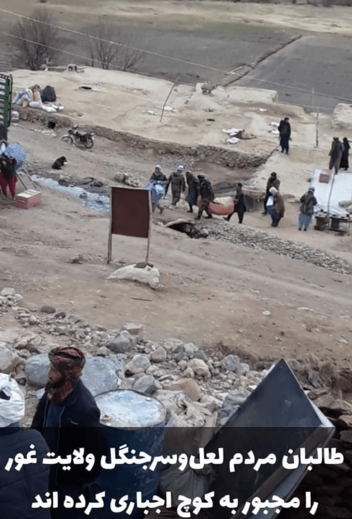 منابع محلی در لعلوسرجنگل غور میگویند که طالبان باشندگان دو روستا در این ولسوالی را بهگونهای اجباری کوچ دادهاند. منابع میگویند که این افراد باشندگان روستای «بوم» در منطقهی «چهارآسیاب» و روستای «تنگی نوشته» در منطقهی «کرمان» ولسوالی لعلوسرجنگل هستند.