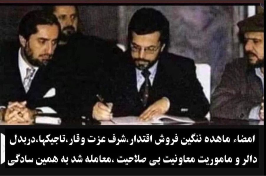 مردم فاجعه افشار، ویرانی شهر کابل، کشتار بیش از هفتاد هزار کابلی معصوم، چور و غارت زندگی و مال مردم و دارایی های عامه، غصب هزاران جریب زمین متعلق به مردم، ایجاد جزایر قدرت و تجاوز به حریم خصوصی و زندگی و ناموس مردم ، رشد سریع غده سرطانی بنیادگرایی اسلامی و جنگ سالاری و در نهایت امضای سند فروش رسمی افغانستان در «بن» و توطئه ایجاد یک دولت وابسته و مزدور دیگر تحت نام جمهوریت با ترکیبی متشکل از قلدران و ناقضان معروف حقوق بشر، با جنایتکاران معلوم الحال را بخاطر دارند.