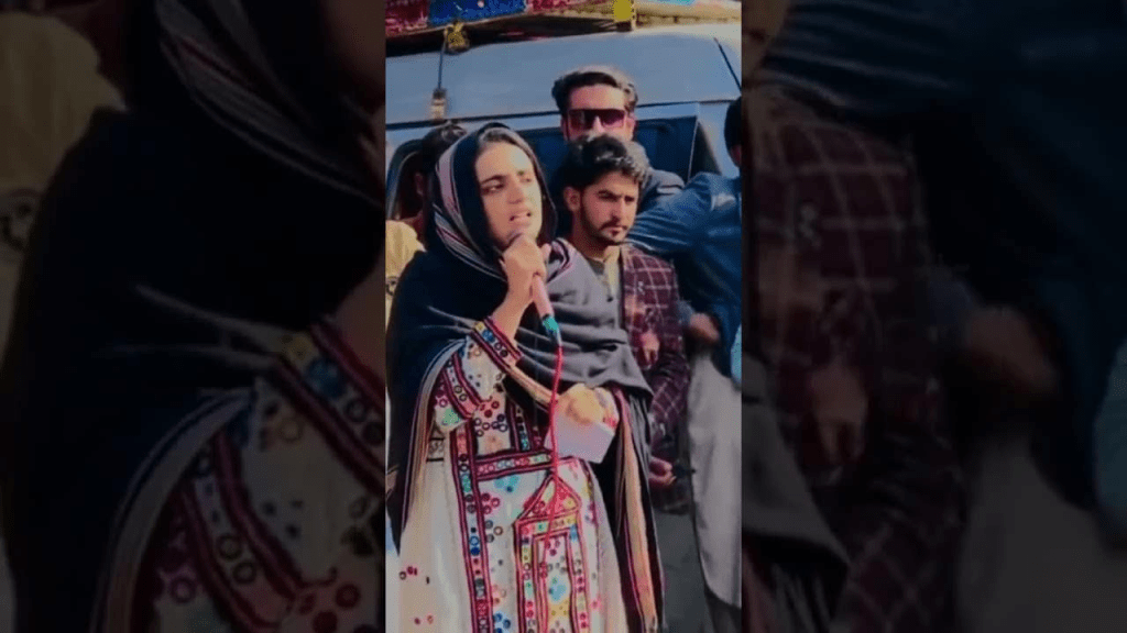 در ۲۵ دسامبر، ویدیویی از یک زن جوان در فضای مجازی بهصورت گسترده نشر شد که خواهان همبستهگی جهانی برای جلوگیری از آنچه او نسلکشی مردم بلوچ توسط دولت پاکستان میخواند، شد. آن زمان، او هزاران تن از بلوچهای معترض را با خود به اسلامآباد، پایتخت پاکستان، برده بود تا برای مفقودشدهگان بلوچ دادخواهی کند. سه روز میشد که پس از راهپیمایی در مسیری یک هزار و ۶۰۰ کیلومتری از بلوچستان تا اسلامآباد، به پایتخت رسیده بود؛ اما در ورودی شهر با باتوم و گاز اشکآور و موترهای آبپاش پولیس پاکستان استقبال شد. با این حال، معترضان متوقف نشدند و خود را به مرکز شهر اسلامآباد رساندند و در پیش روی کلپ خبرنگاران اعتصاب کردند.