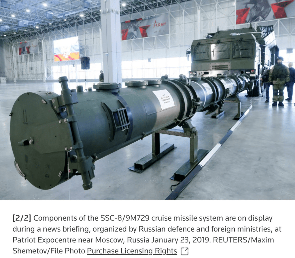 وزیر خارجهٔ اوکراین اعلام کرده است که روسیه در ماههای اخیر اوکراین را با راکتی هدف قرار داده که توسعهٔ پنهانی آن باعث شد دونالد ترامپ، رئیسجمهور وقت ایالات متحده، در نخستین دورهٔ ریاستجمهوریاش از پیمان کنترول تسلیحات هستهای با مسکو خارج شود.