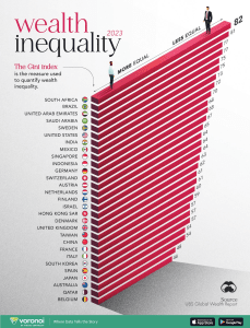 ۵. نمودار نابرابری ثروت در کشورهای مختلف: