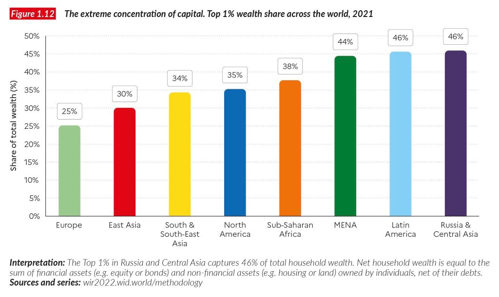 نمودار سهم ثروت ۱۰٪ بالایی در مناطق مختلف جهان را نمایش میدهد و به بحث تمرکز سرمایه در دست اقلیت کوچک و گسترش شکاف طبقاتی کمک میکند.
